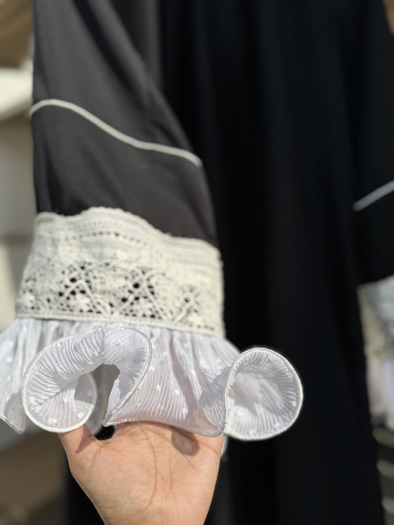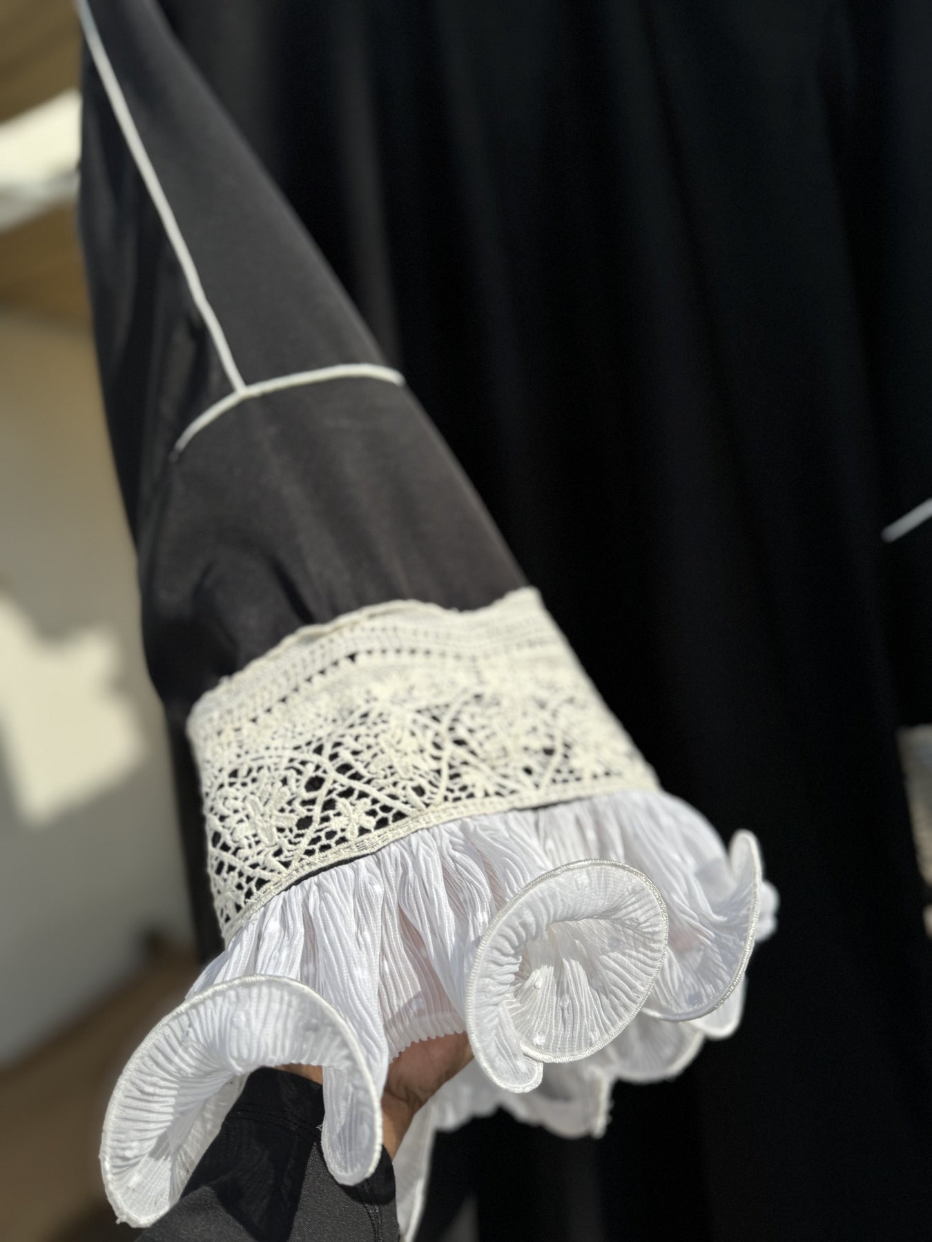 طقم عباية بأكمام كروشيه وكشكشة من ميدنايت رافل