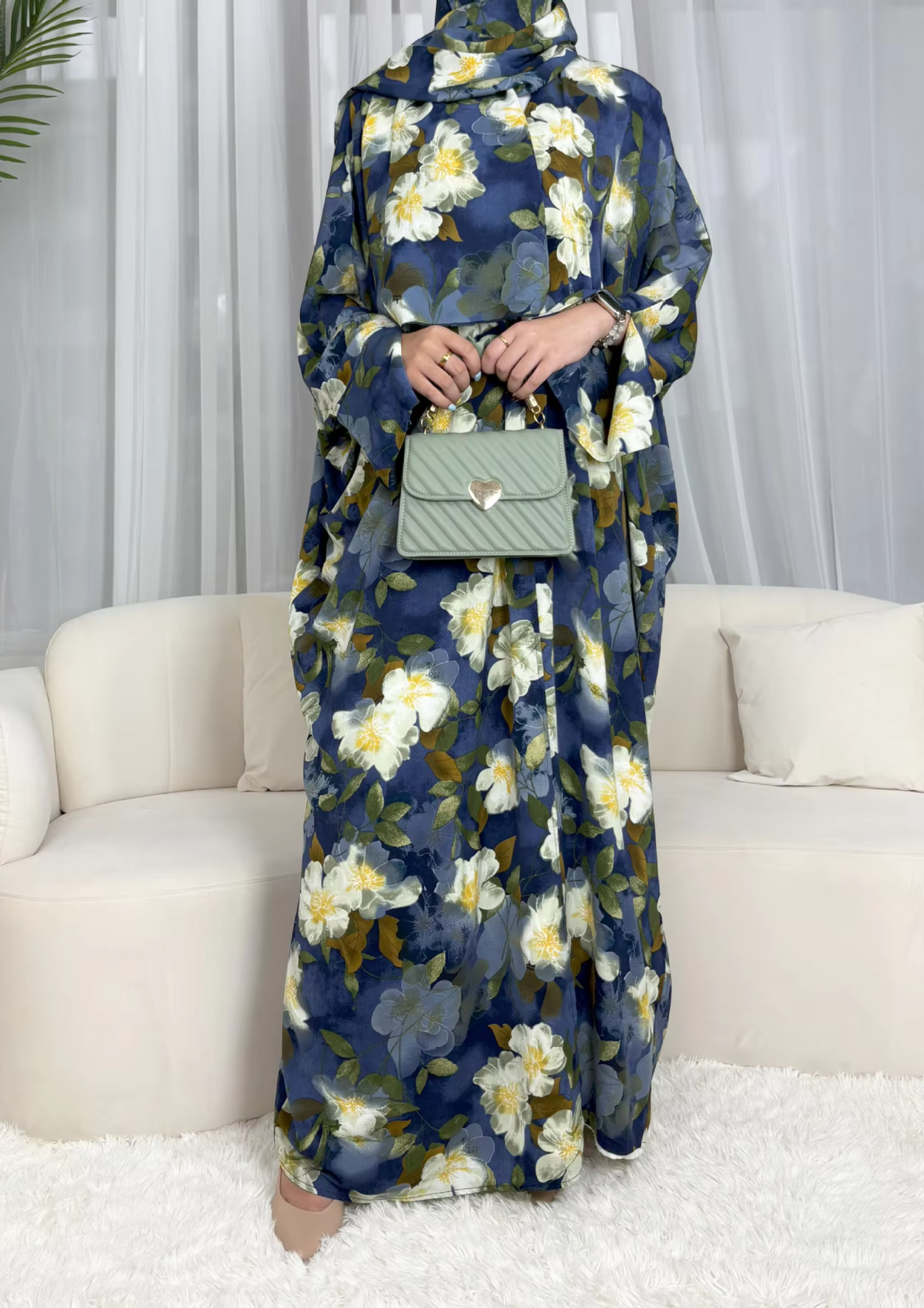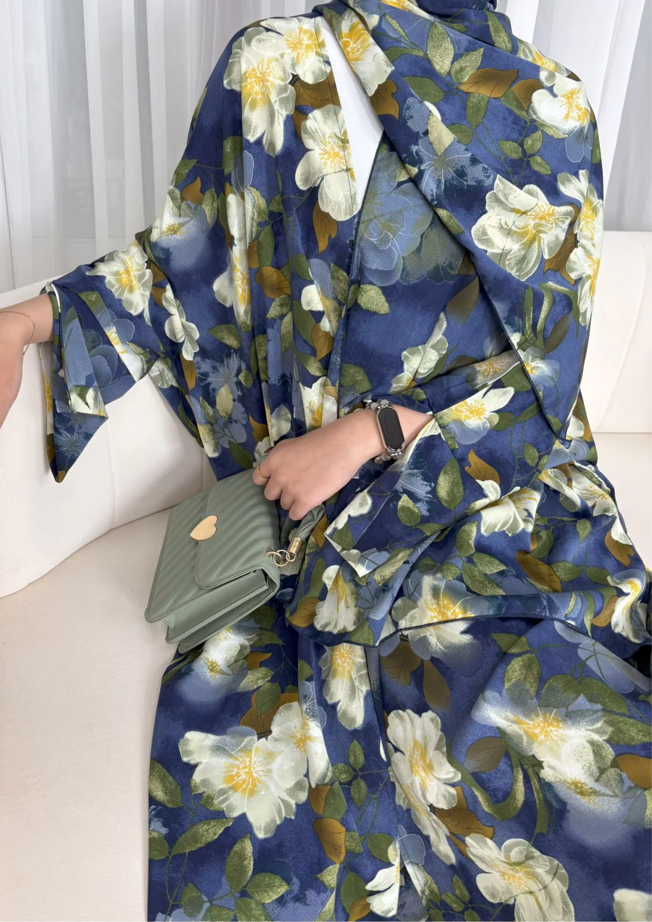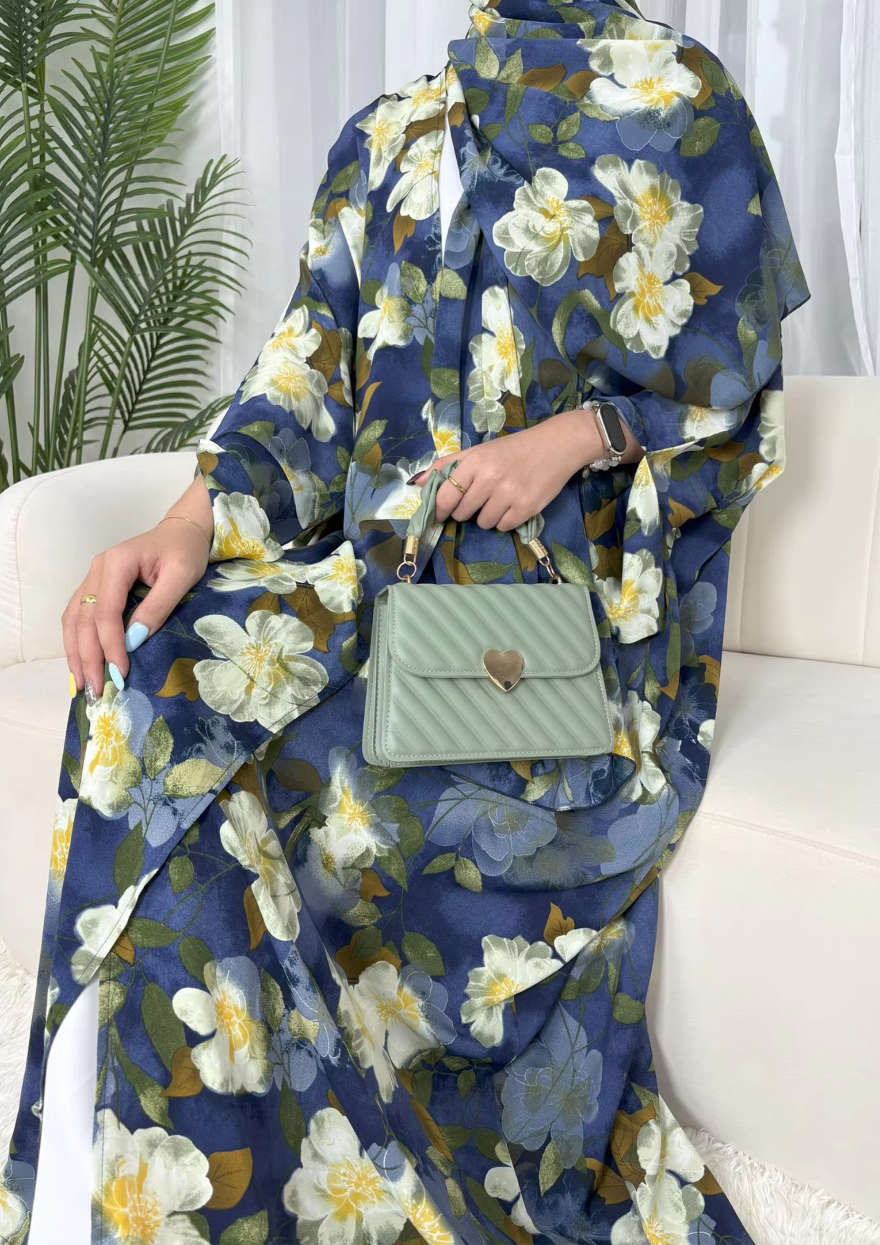 Grace meets elegance in this dreamy Navy Blue Chiffon abaya set , delicately paired with a matching sheila—crafted for those who cherish softness, sophistication, and timeless modesty.