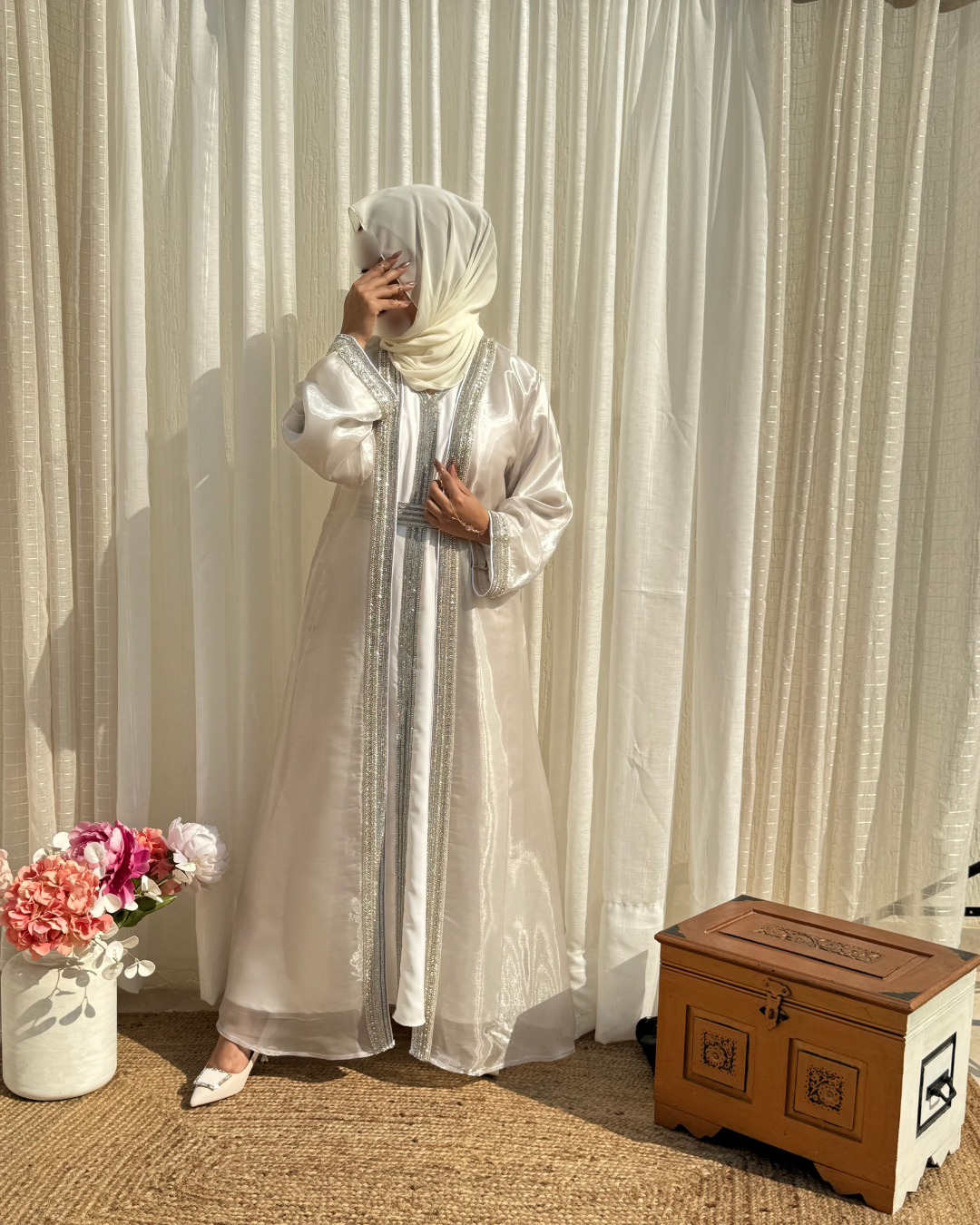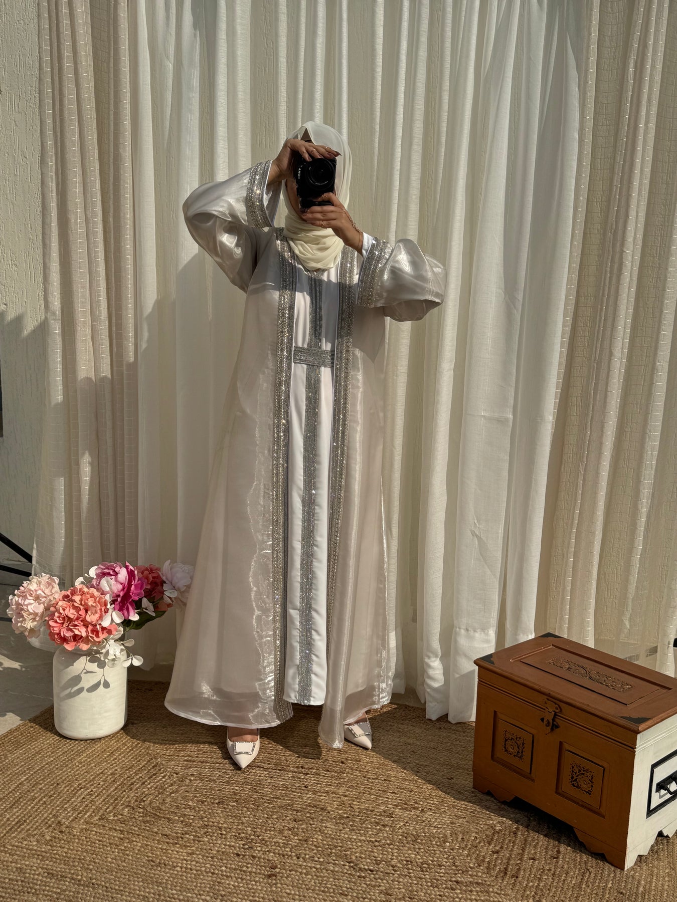 Celestial Empress Fancy Layered Dubai Style Open Abaya (Skin)