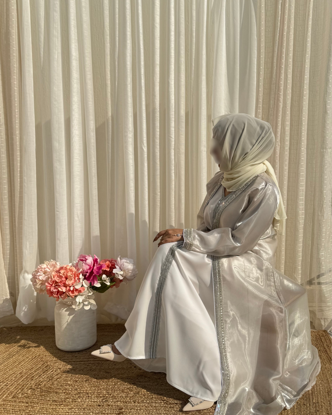 Baby Lights - Satin Silk Cream Dubai Style Fancy Open Abaya