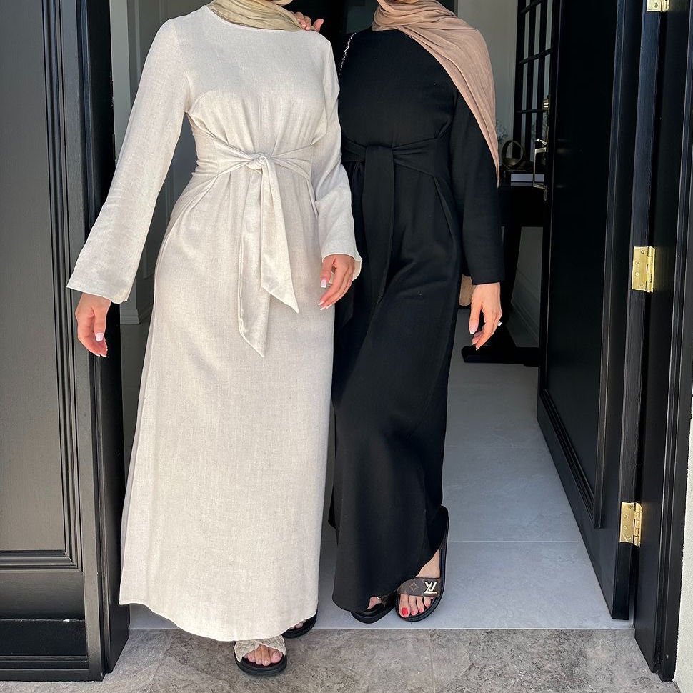 Linen Cotton Belt Wrap Abaya