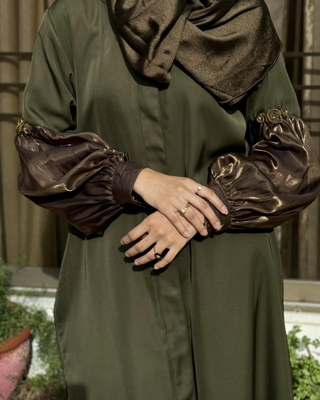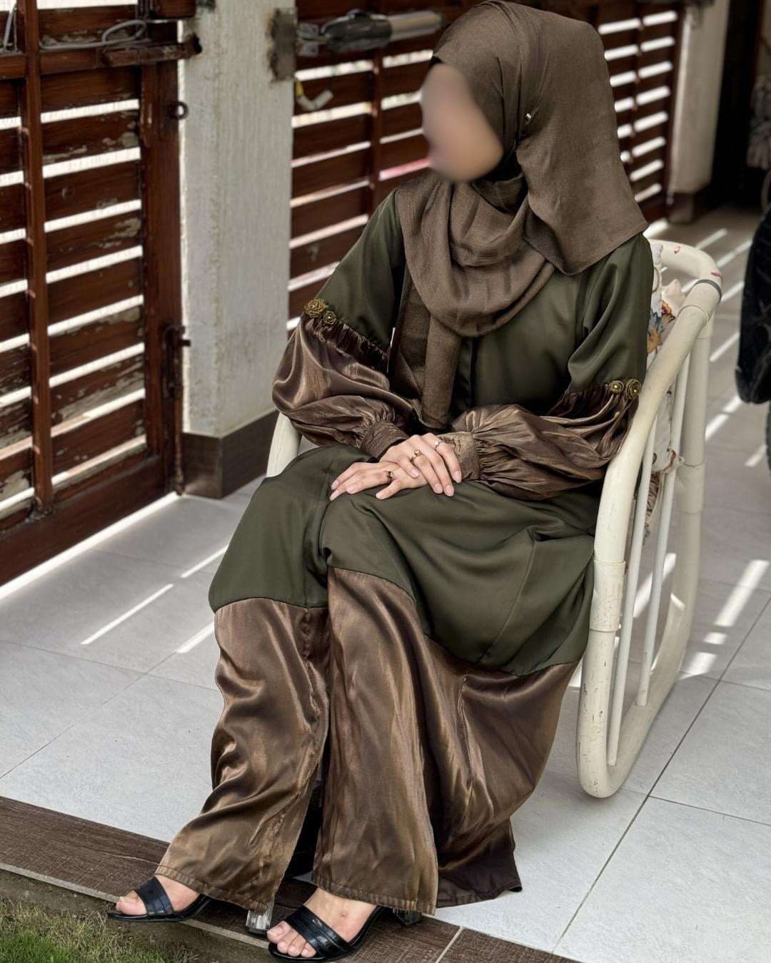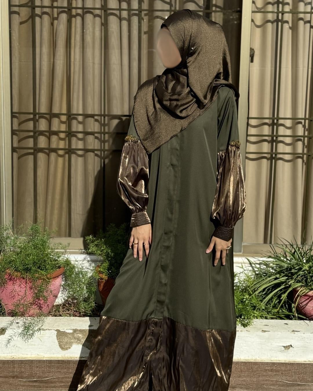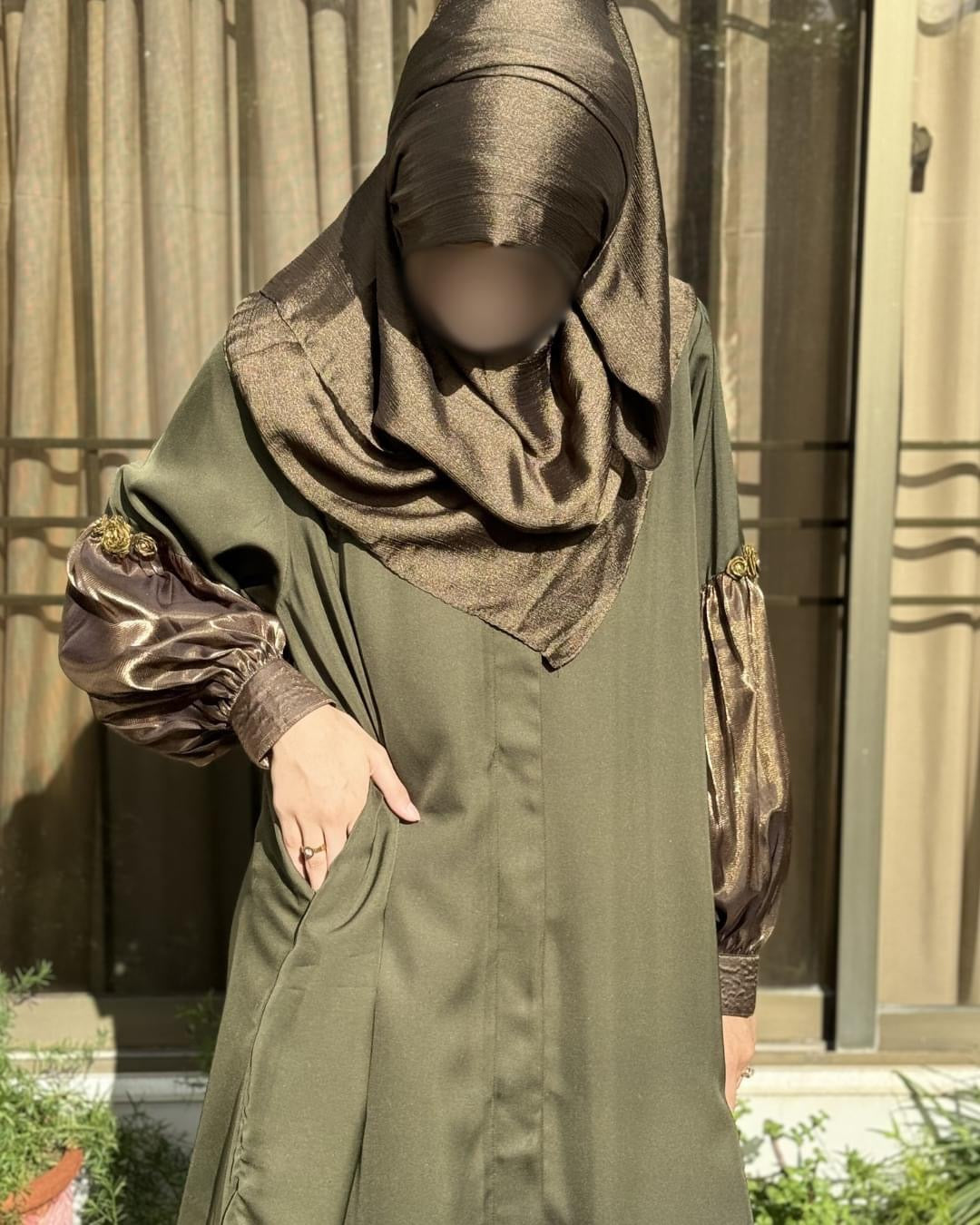The premium Reem abaya is made in luxury Foil silk fabric and premium imported Nida Fabric. It is a 1-pc luxury abaya and includes a pocket .